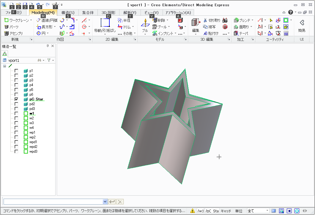 ・さて、昨日のイリュージョンのような変身立体を作ろうとしたらどうなるだろう。 ・と、思ったけど考えたら結構単純かもしれないと気付く。基本的に手前側から見下ろした像があって、鏡には反対側から見下ろした像が写っている。 ・竹輪の穴を真っ直ぐ覗くような方向から見たとすると、竹輪をどんな曲面で切断してもドーナツ状に見える。従って、二方向から違う形の筒同士を交差させて、両者の交差をとれば良いはずだ。 ・簡単のためにとりあえず45度の角度から見る前提にすれば、この両方が90度の角度で交差するわけだ。 ・ならば・・ということで、試しに円と星型に見えるようにPTC Creoのフリー版で作ってみた。 ・面倒くさいけど、難しくはないっていうところかな。 ・せっかくだから、CADデータやSTLデータを置いておこう。試行錯誤した痕跡が一杯だけど、基本的には 1)二つの筒状立体を交差させる 2)両者のAND(交差)の立体を作る 3)立体の下端を垂直方向に伸ばす 4)不要な部分を削除 5)できた立体が正の空間に来るように平行移動 という具合。今回、円筒の端は欠けてしまったけど、やりかたは分かったから良いとしよう。いくらでもバリエーションを作れるな。 |