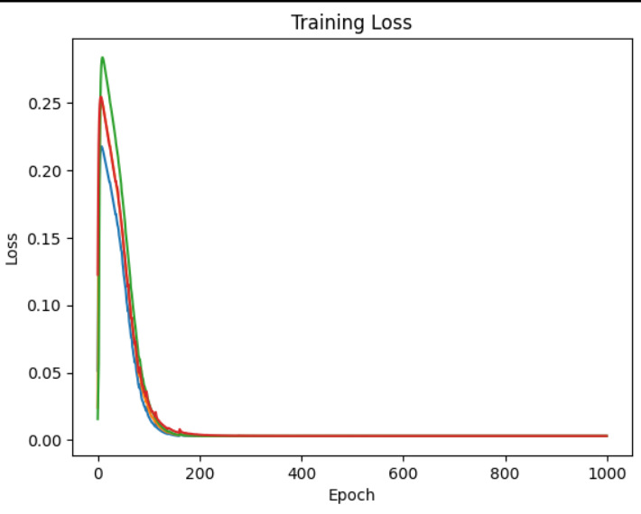 ・とりあえず2-4-4構成でウェイトを-0.5〜+0.5の一様乱数、バイアスの初期値を0.2程度にして活性化関数をLeaky ReLUにしてみたらこんな感じでサクッと落ち着くことが多くなった。